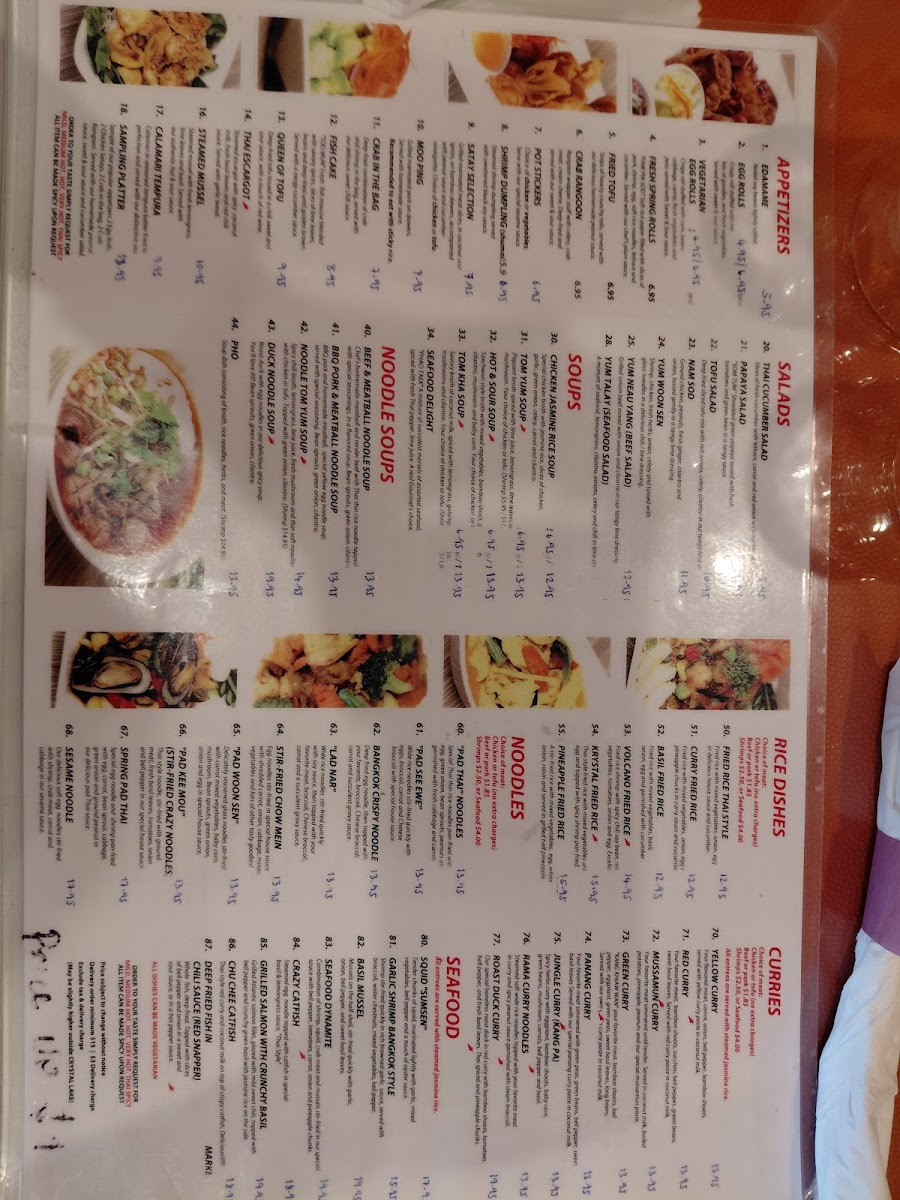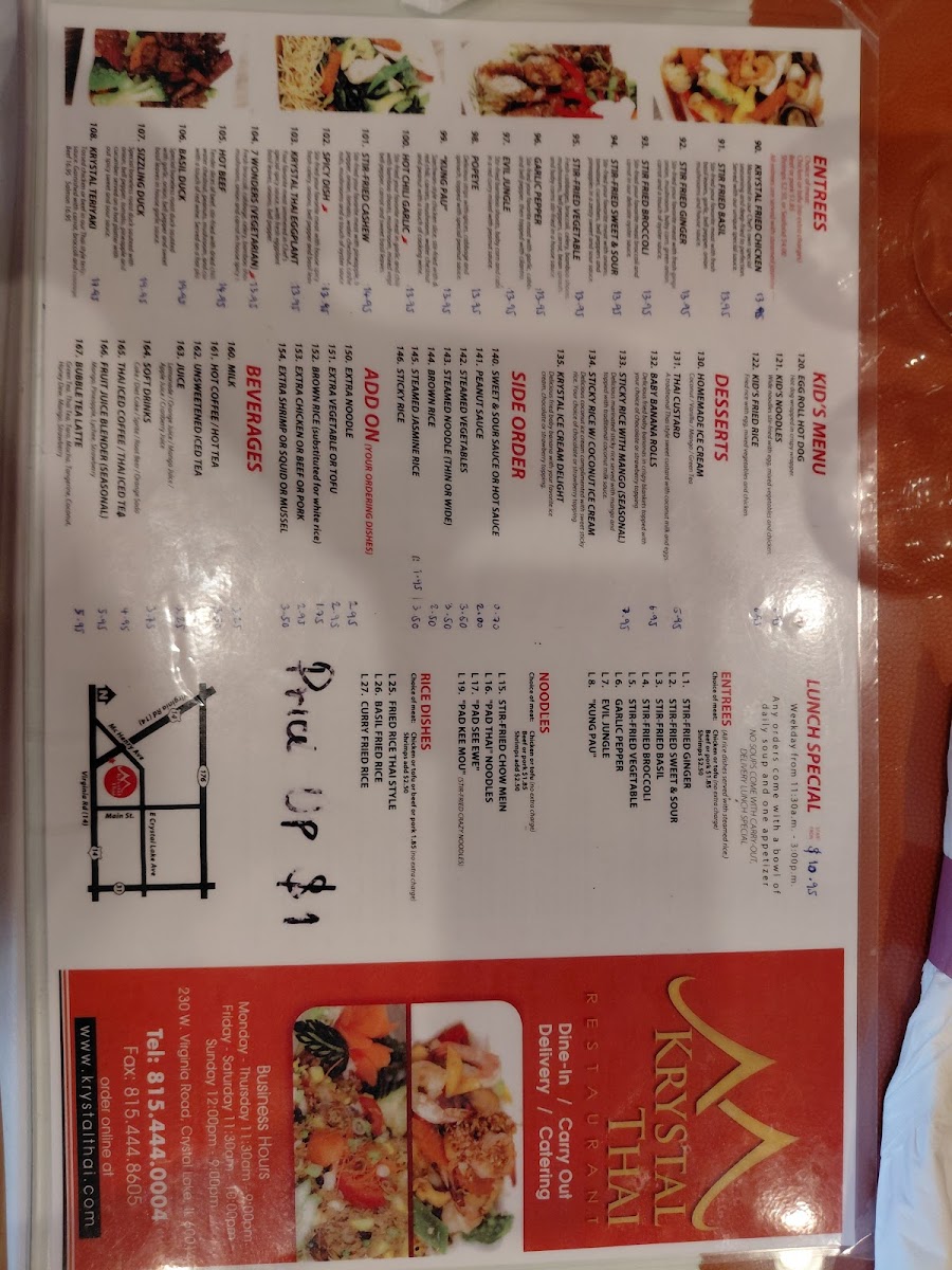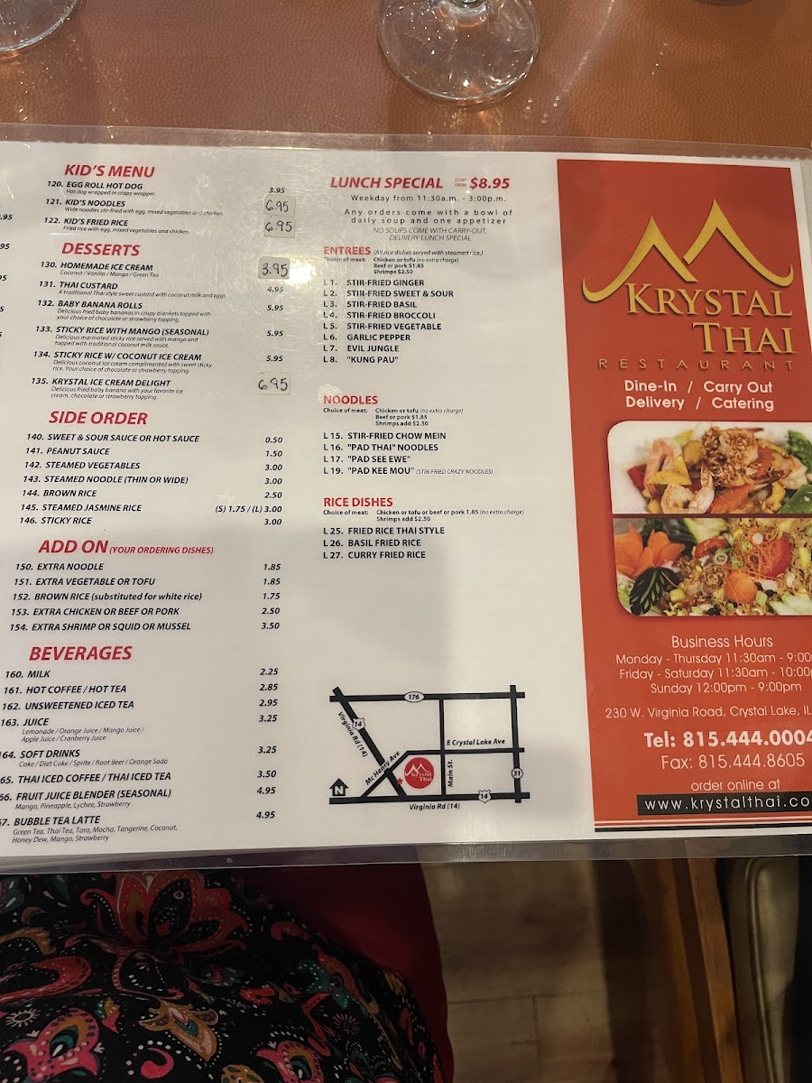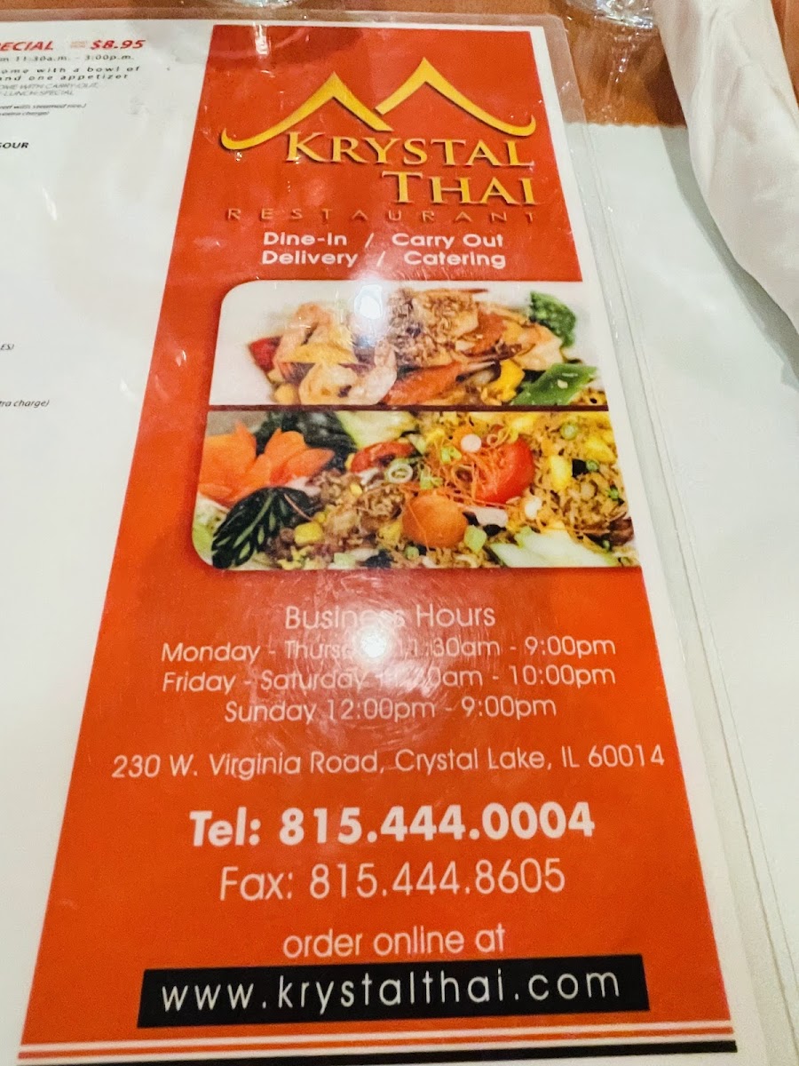 Krystal Thai Menu